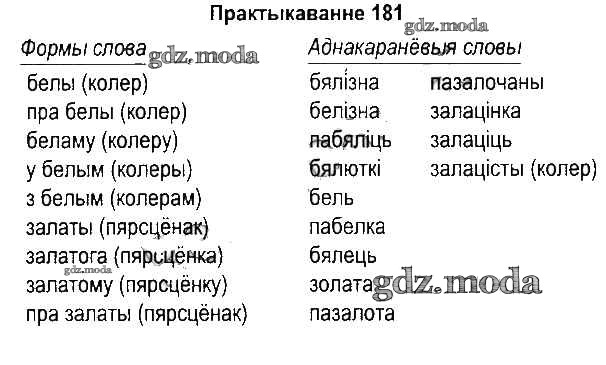 ГДЗ решение к заданию № 181 Белорусский язык 5 класс Красней В.П. Национальный институт образования 2014 Часть 1, Часть 2  ФГОС бесплатно на гдз.мода!