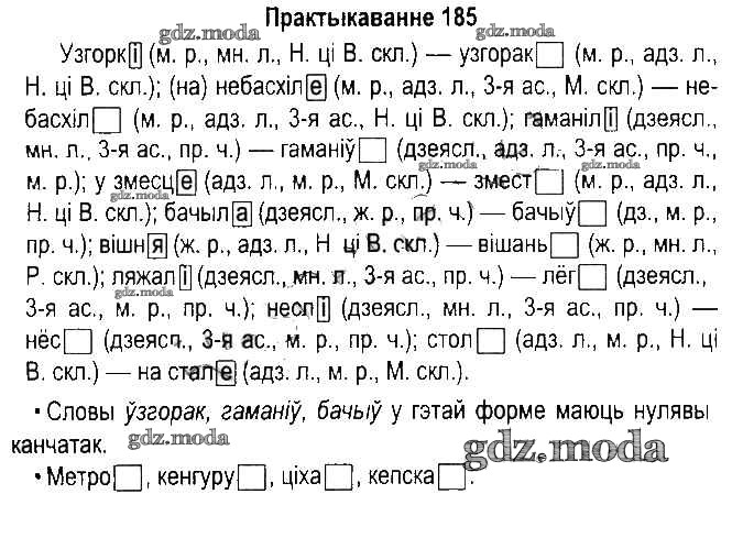 ГДЗ решение к заданию № 185 Белорусский язык 5 класс Красней В.П. Национальный институт образования 2014 Часть 1, Часть 2  ФГОС бесплатно на гдз.мода!