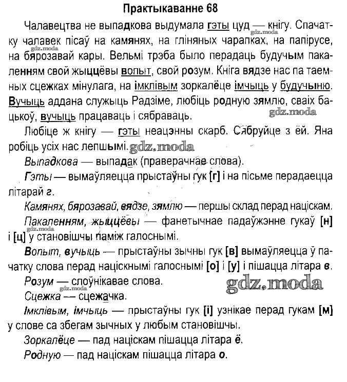 ГДЗ решение к заданию № 68 Белорусский язык 5 класс Красней В.П. Национальный институт образования 2014 Часть 1, Часть 2  ФГОС бесплатно на гдз.мода!