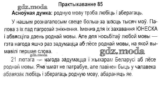 ГДЗ решение к заданию № 85 Белорусский язык 5 класс Красней В.П. Национальный институт образования 2014 Часть 1, Часть 2  ФГОС бесплатно на гдз.мода!