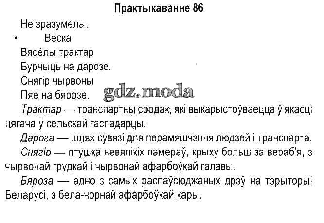 ГДЗ решение к заданию № 86 Белорусский язык 5 класс Красней В.П. Национальный институт образования 2014 Часть 1, Часть 2  ФГОС бесплатно на гдз.мода!