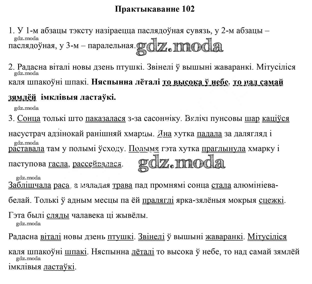 ГДЗ решение к заданию № 102 Белорусский язык 5 класс Валочка Г.М. Национальный институт образования 2019 Часть 1, Часть 2 ФГОС бесплатно на гдз.мода!