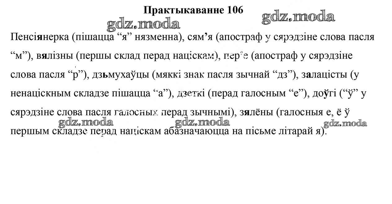 ГДЗ решение к заданию № 106 Белорусский язык 5 класс Валочка Г.М. Национальный институт образования 2019 Часть 1, Часть 2 ФГОС бесплатно на гдз.мода!