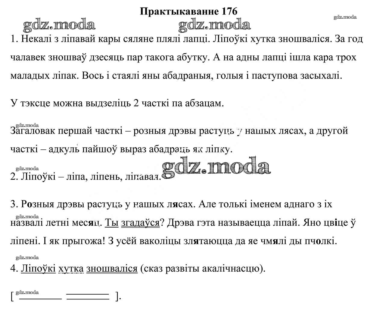 ГДЗ решение к заданию № 176 Белорусский язык 5 класс Валочка Г.М. Национальный институт образования 2019 Часть 1, Часть 2 ФГОС бесплатно на гдз.мода!
