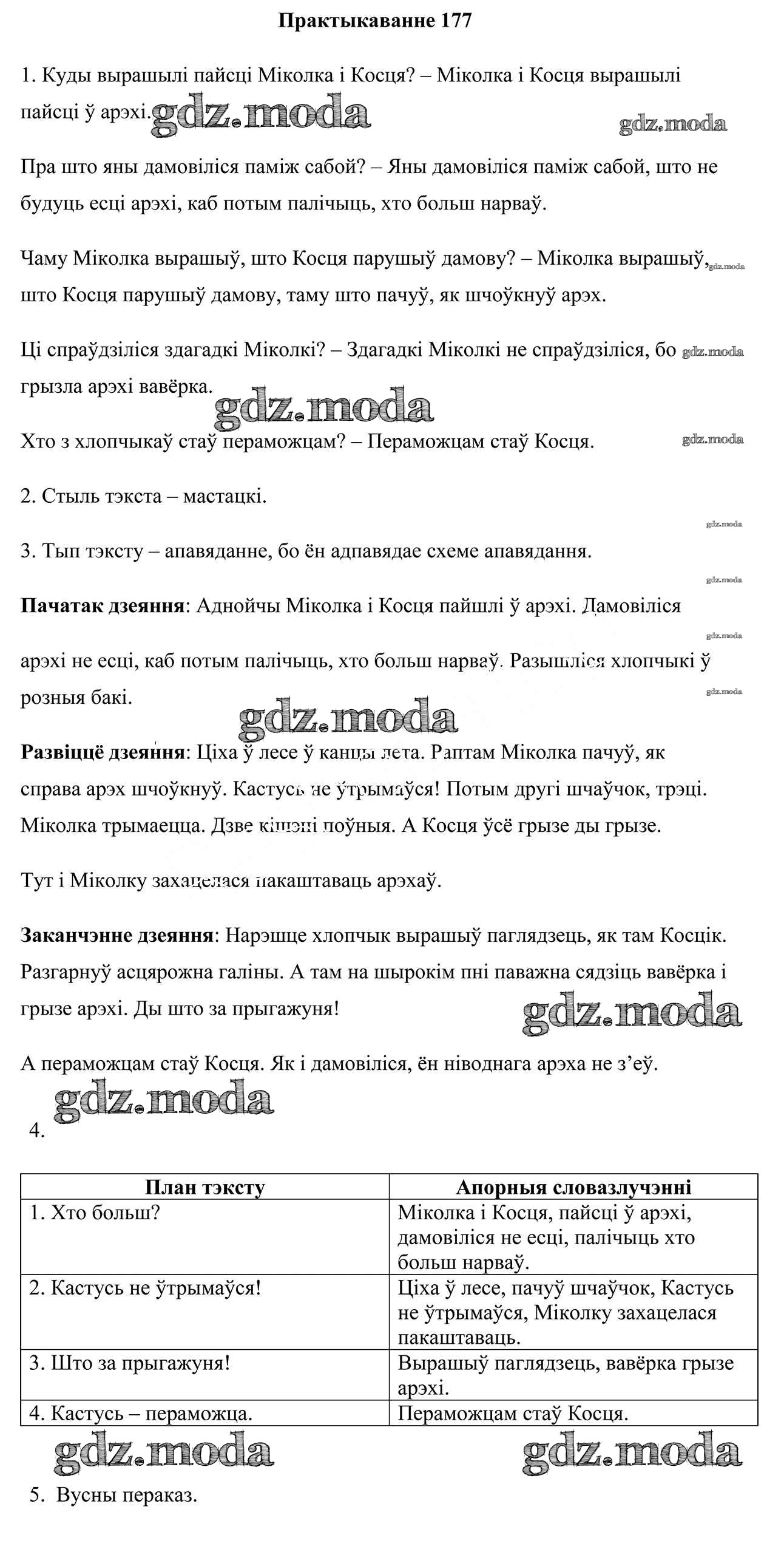 ГДЗ решение к заданию № 177 Белорусский язык 5 класс Валочка Г.М. Национальный институт образования 2019 Часть 1, Часть 2 ФГОС бесплатно на гдз.мода!