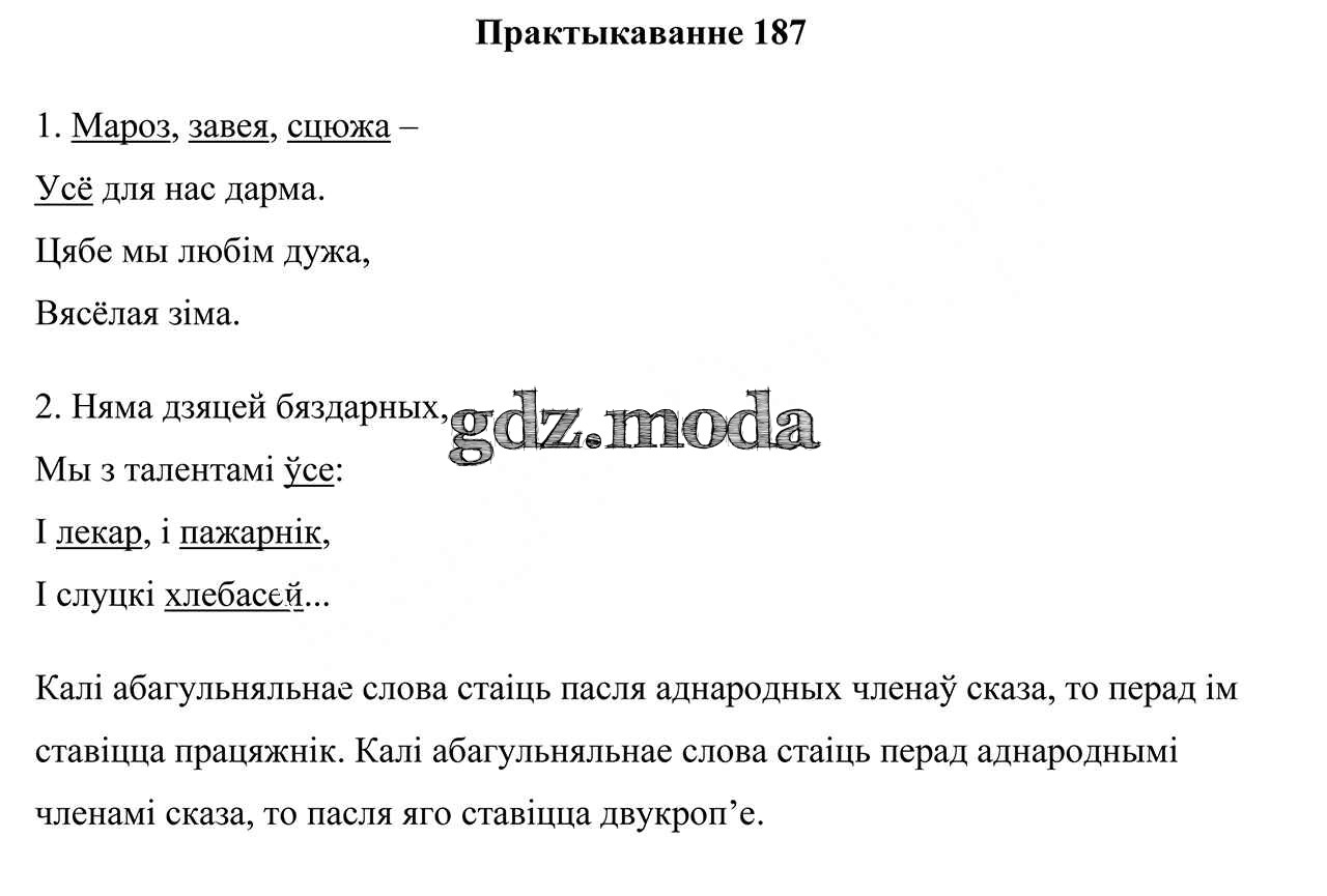 ГДЗ решение к заданию № 187 Белорусский язык 5 класс Валочка Г.М. Национальный институт образования 2019 Часть 1, Часть 2 ФГОС бесплатно на гдз.мода!