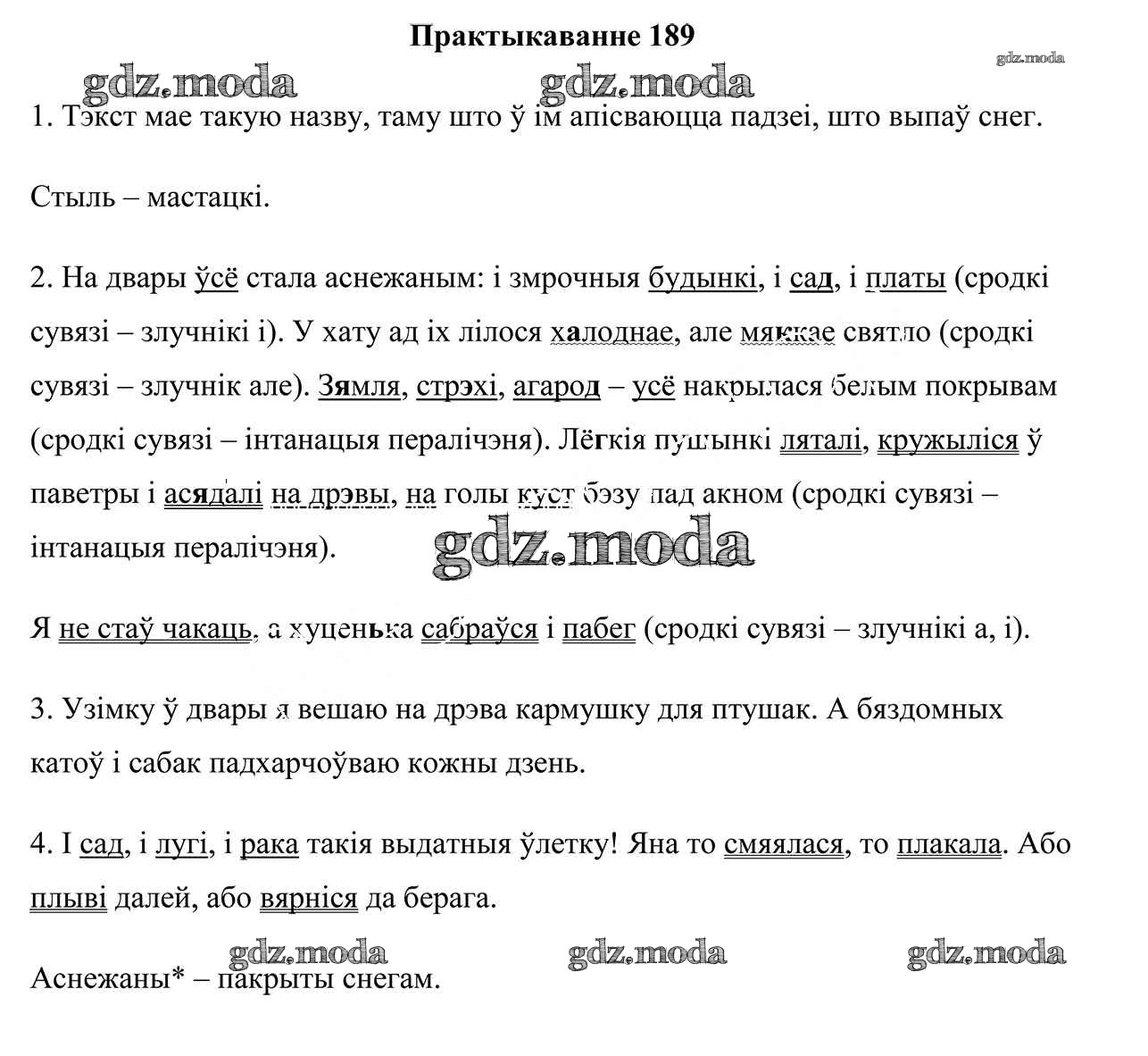 ГДЗ решение к заданию № 189 Белорусский язык 5 класс Валочка Г.М. Национальный институт образования 2019 Часть 1, Часть 2 ФГОС бесплатно на гдз.мода!