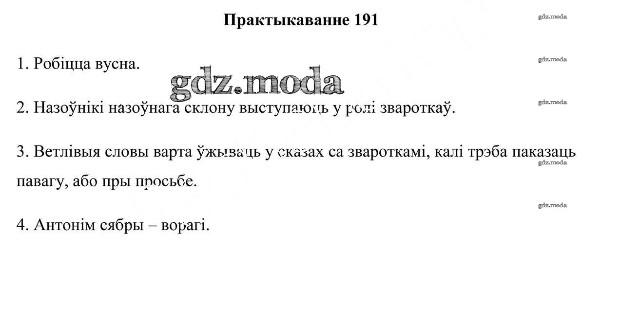 ГДЗ решение к заданию № 191 Белорусский язык 5 класс Валочка Г.М. Национальный институт образования 2019 Часть 1, Часть 2 ФГОС бесплатно на гдз.мода!
