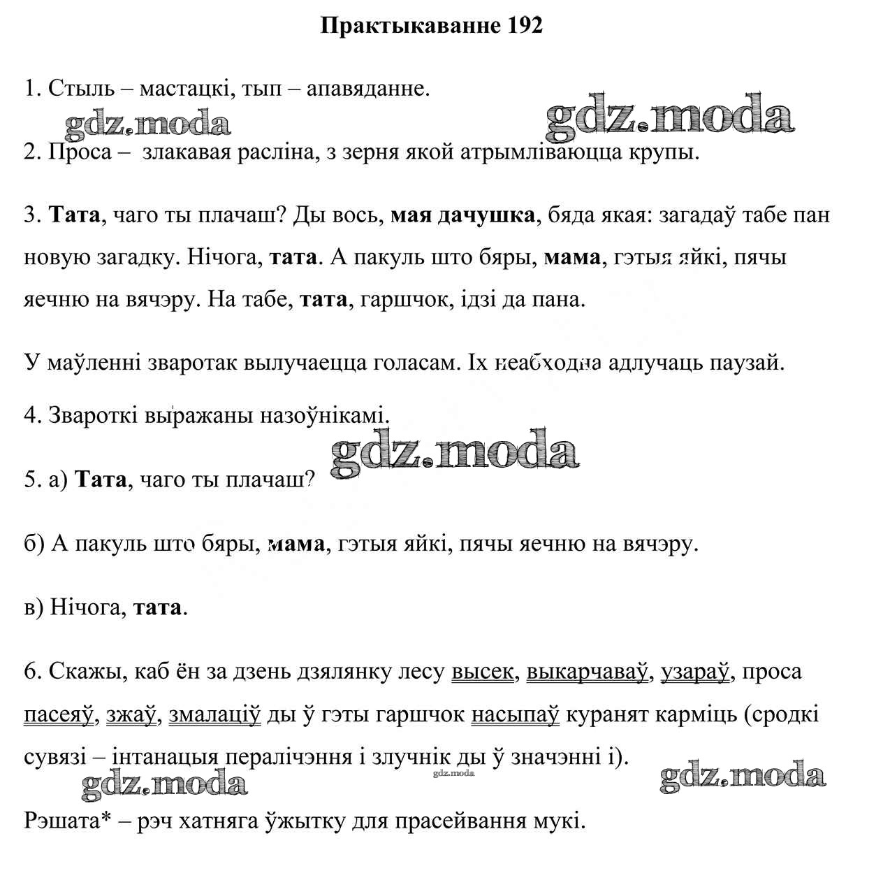 ГДЗ решение к заданию № 192 Белорусский язык 5 класс Валочка Г.М. Национальный институт образования 2019 Часть 1, Часть 2 ФГОС бесплатно на гдз.мода!