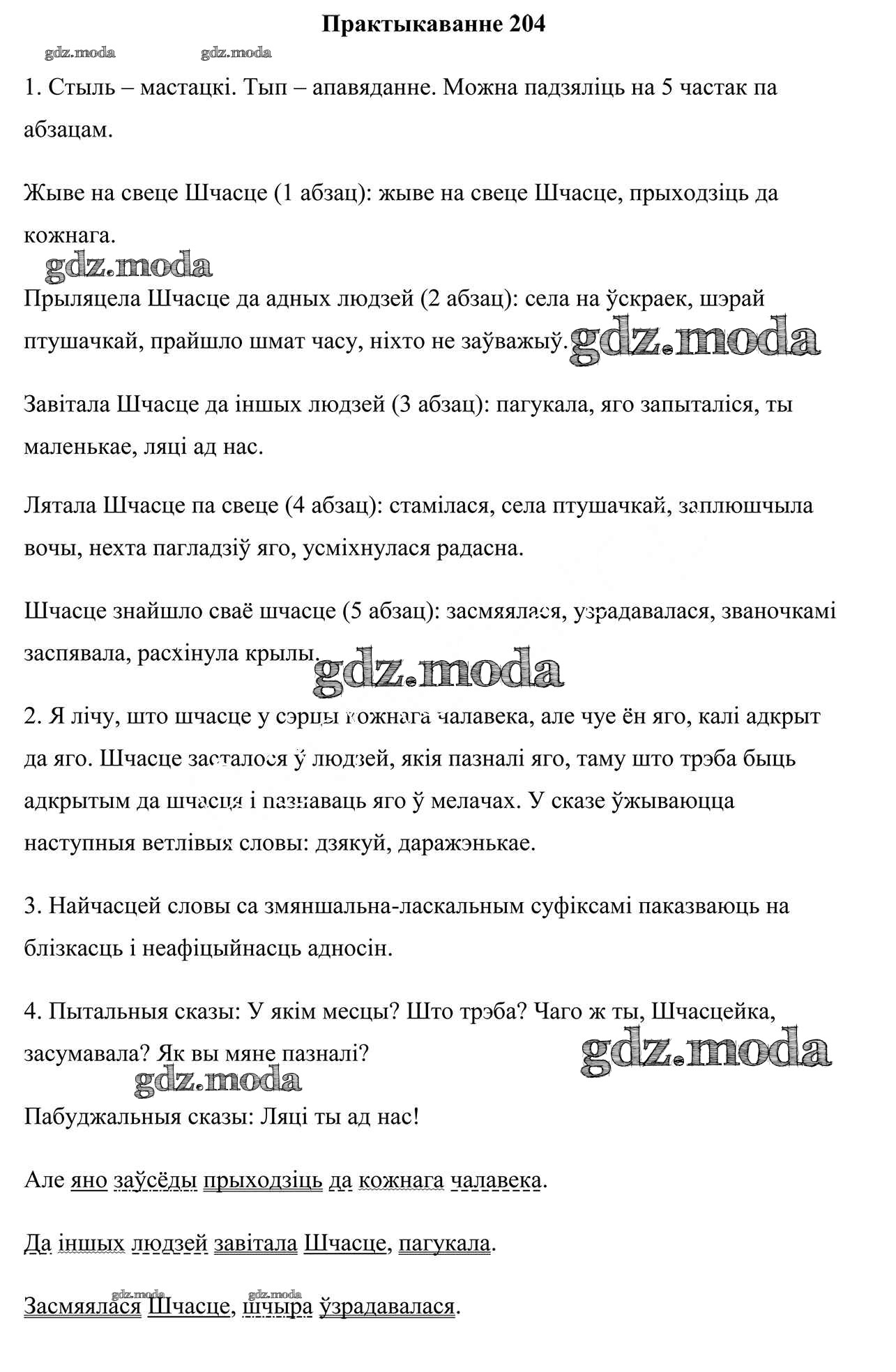 ГДЗ решение к заданию № 204 Белорусский язык 5 класс Валочка Г.М. Национальный институт образования 2019 Часть 1, Часть 2 ФГОС бесплатно на гдз.мода!