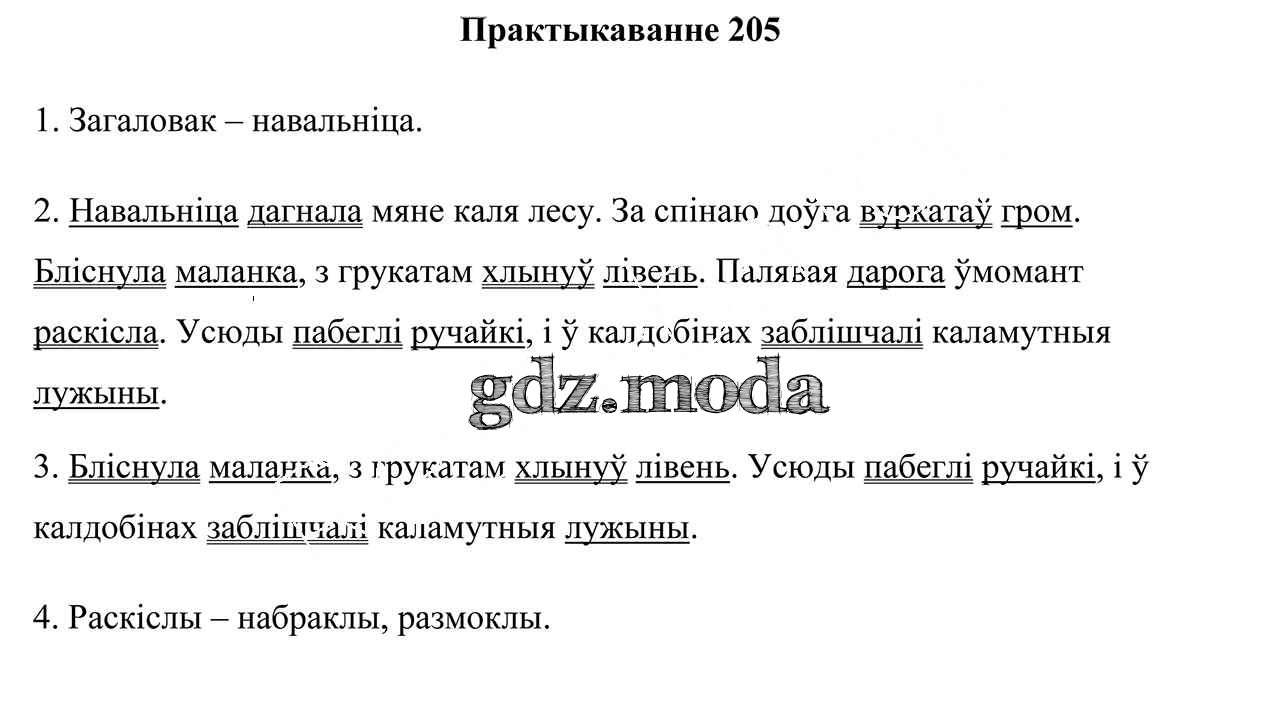ГДЗ решение к заданию № 205 Белорусский язык 5 класс Валочка Г.М. Национальный институт образования 2019 Часть 1, Часть 2 ФГОС бесплатно на гдз.мода!
