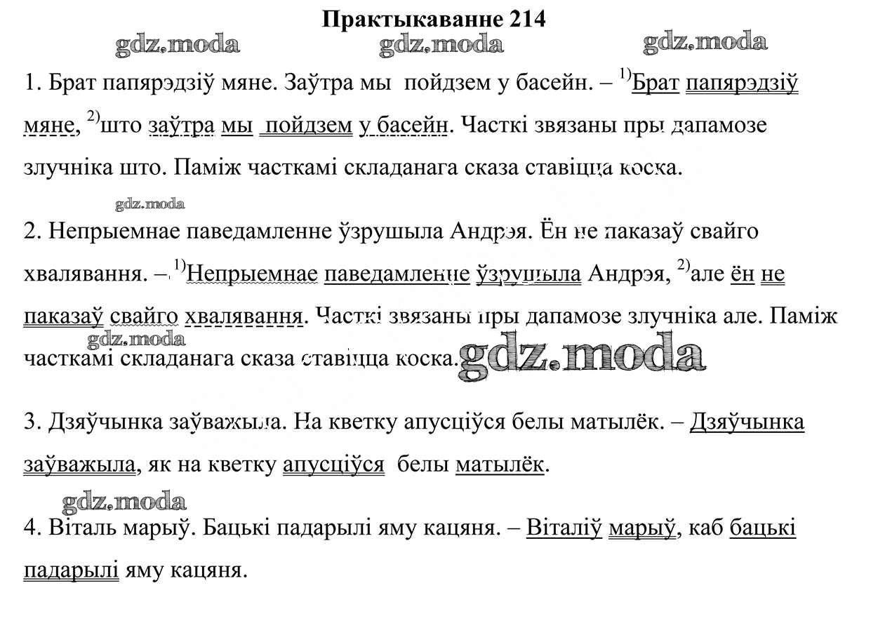 ГДЗ решение к заданию № 214 Белорусский язык 5 класс Валочка Г.М. Национальный институт образования 2019 Часть 1, Часть 2 ФГОС бесплатно на гдз.мода!