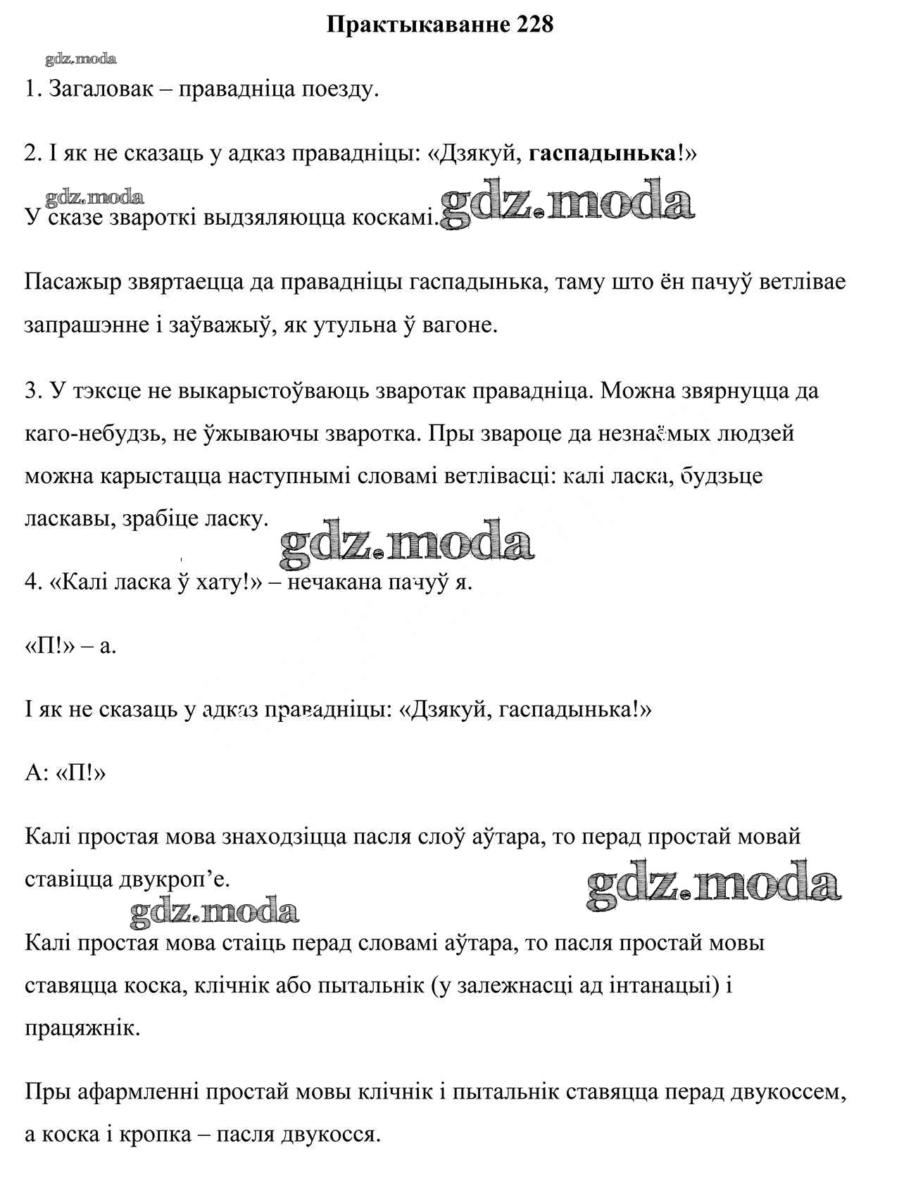 ГДЗ решение к заданию № 228 Белорусский язык 5 класс Валочка Г.М. Национальный институт образования 2019 Часть 1, Часть 2 ФГОС бесплатно на гдз.мода!