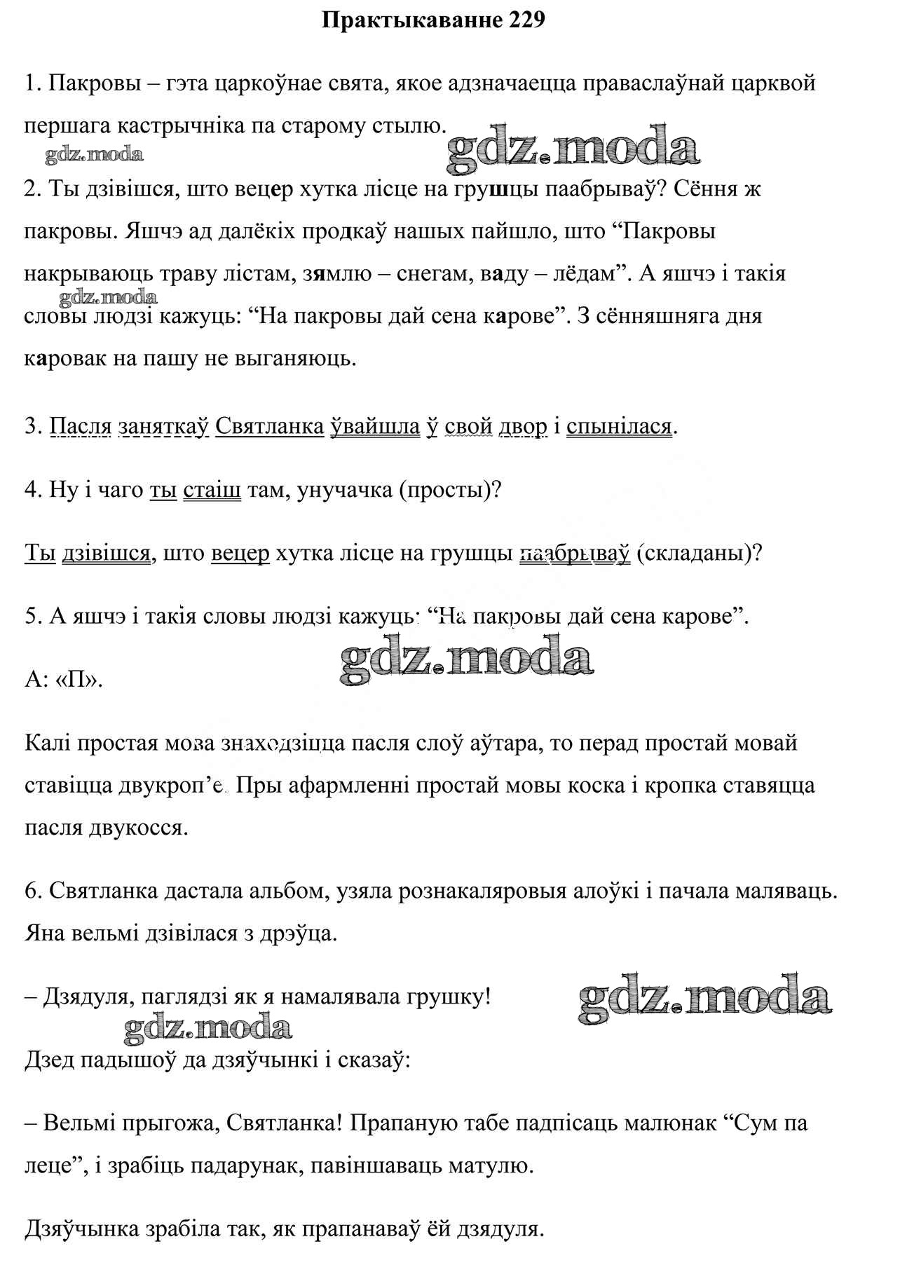 ГДЗ решение к заданию № 229 Белорусский язык 5 класс Валочка Г.М. Национальный институт образования 2019 Часть 1, Часть 2 ФГОС бесплатно на гдз.мода!