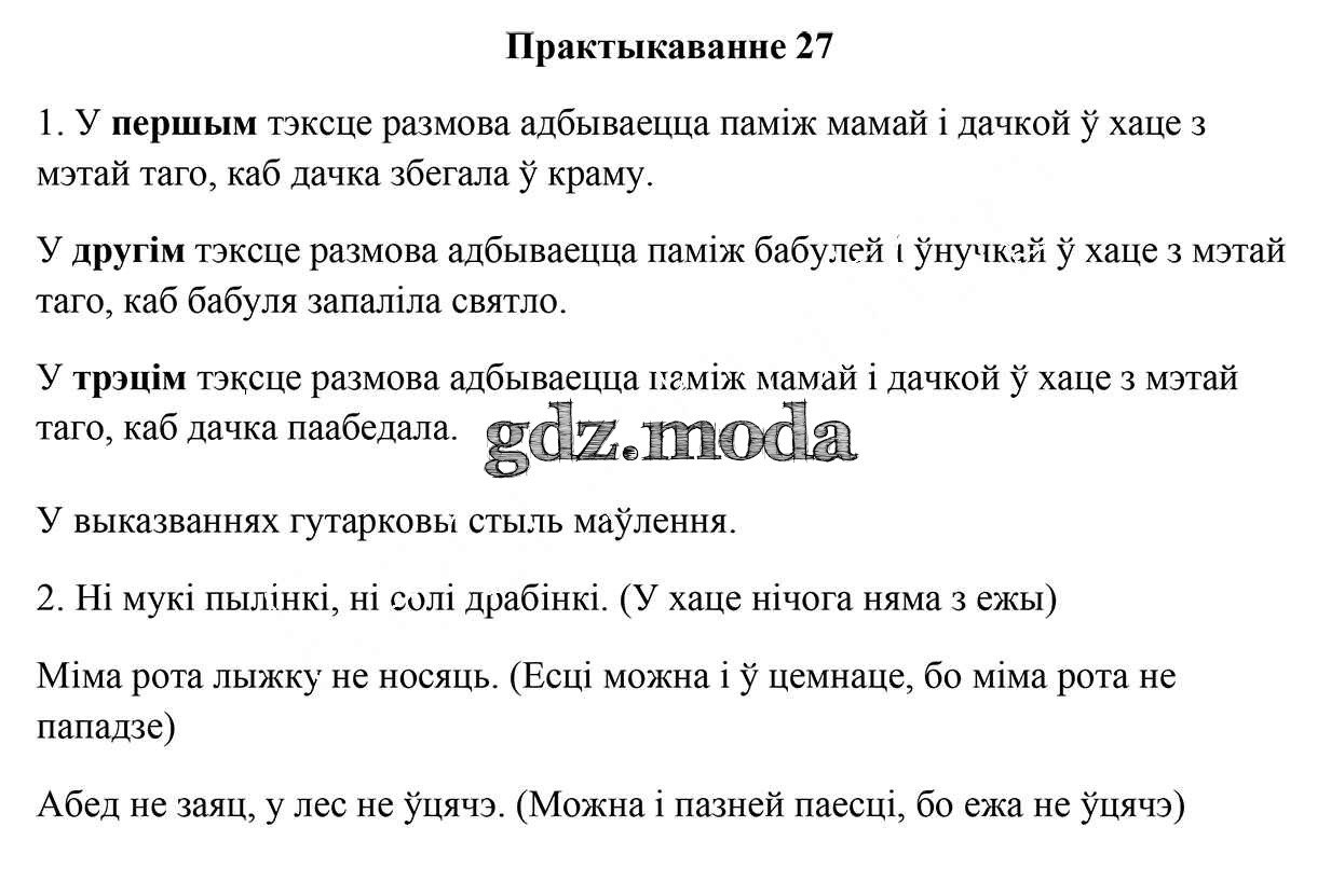 ГДЗ решение к заданию № 27 Белорусский язык 5 класс Валочка Г.М. Национальный институт образования 2019 Часть 1, Часть 2 ФГОС бесплатно на гдз.мода!
