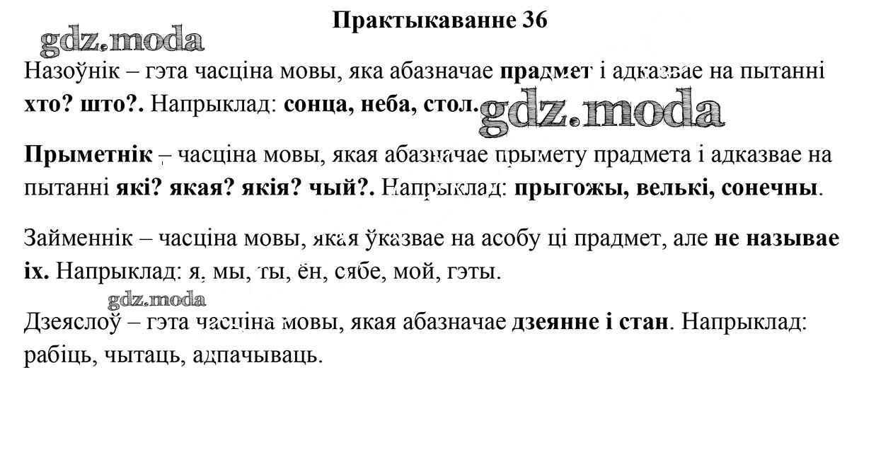ГДЗ решение к заданию № 36 Белорусский язык 5 класс Валочка Г.М. Национальный институт образования 2019 Часть 1, Часть 2 ФГОС бесплатно на гдз.мода!