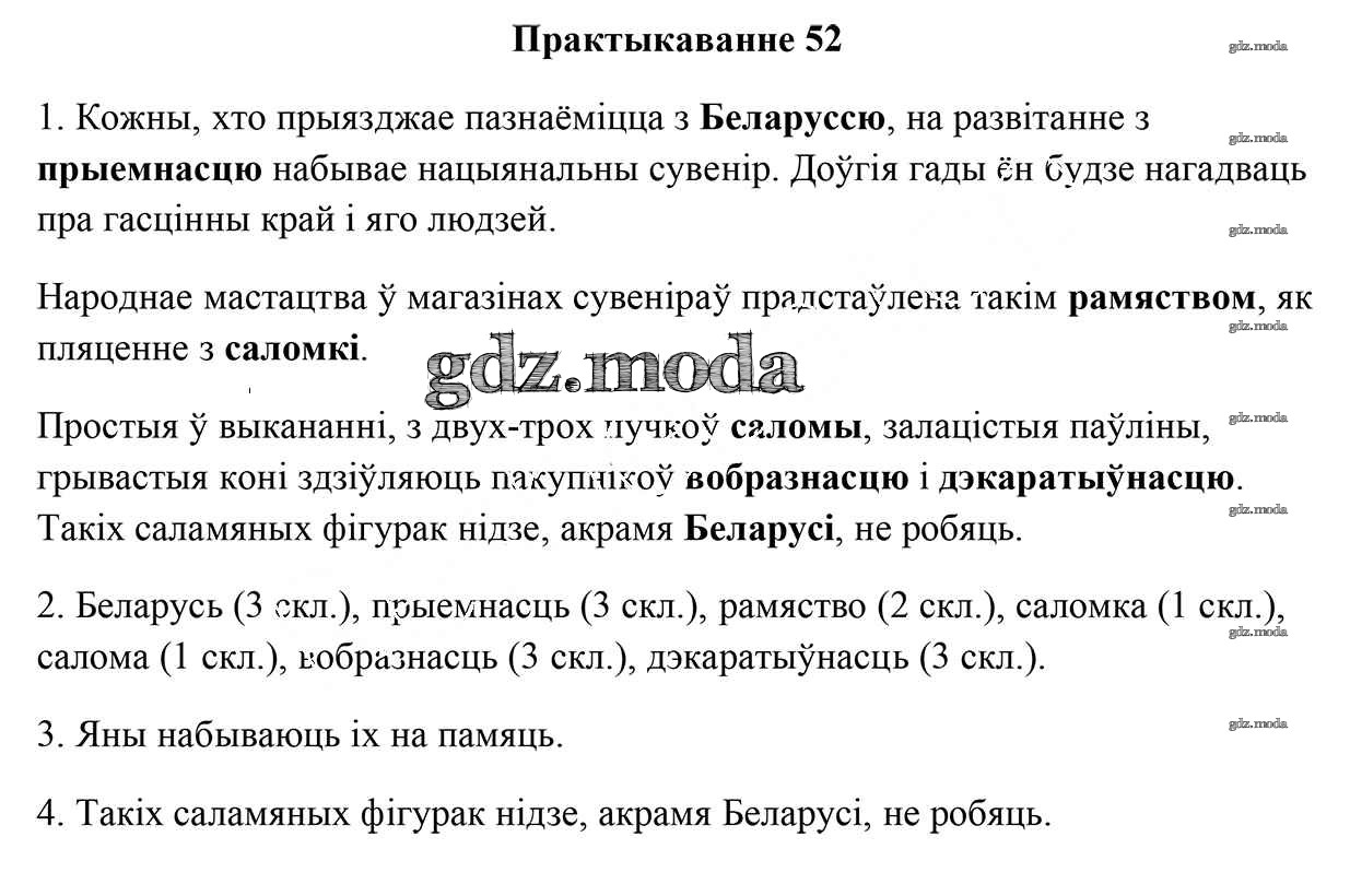 ГДЗ решение к заданию № 52 Белорусский язык 5 класс Валочка Г.М. Национальный институт образования 2019 Часть 1, Часть 2 ФГОС бесплатно на гдз.мода!