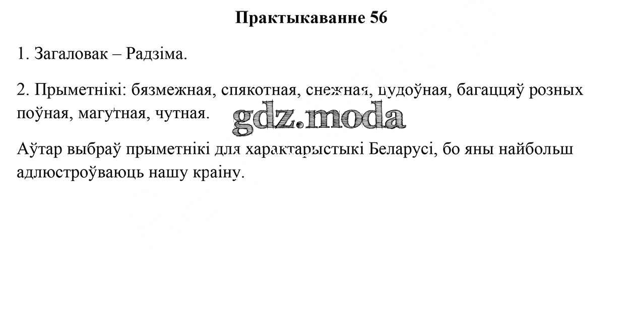 ГДЗ решение к заданию № 56 Белорусский язык 5 класс Валочка Г.М. Национальный институт образования 2019 Часть 1, Часть 2 ФГОС бесплатно на гдз.мода!