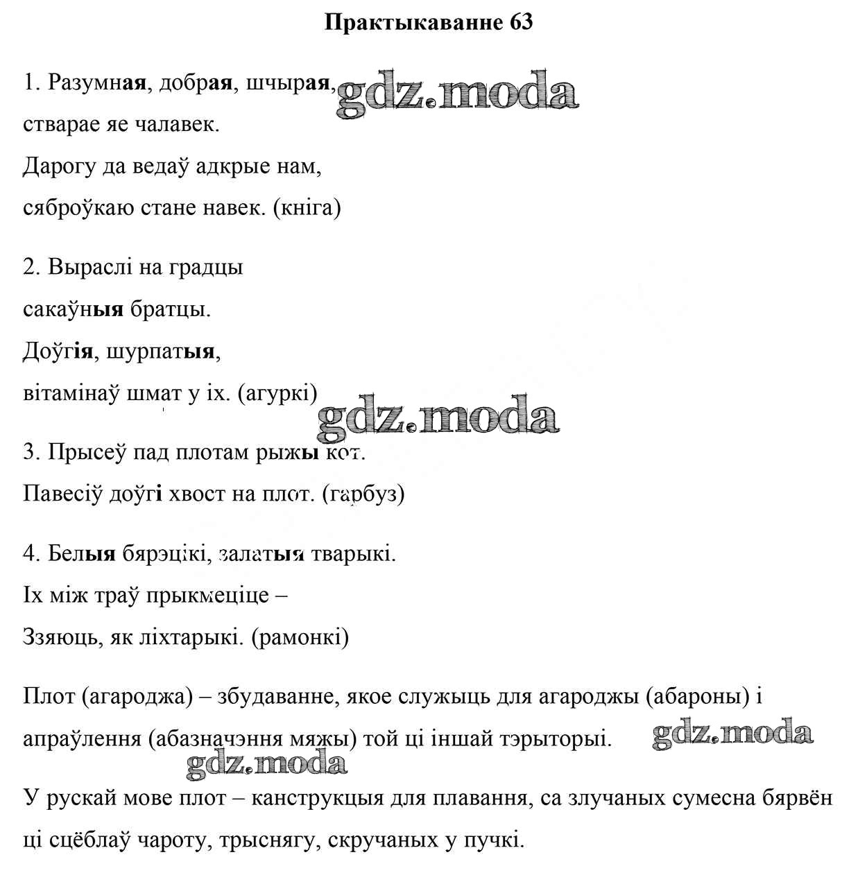 ГДЗ решение к заданию № 63 Белорусский язык 5 класс Валочка Г.М. Национальный институт образования 2019 Часть 1, Часть 2 ФГОС бесплатно на гдз.мода!