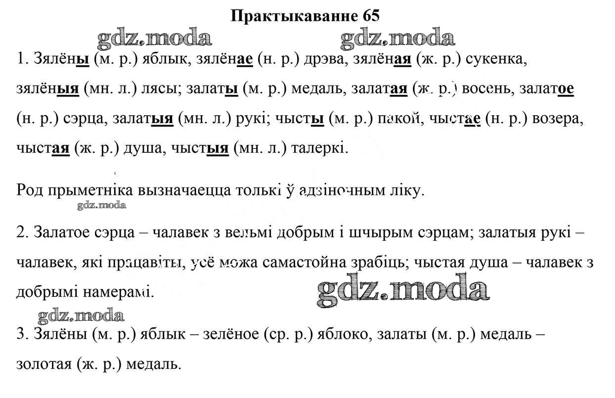 ГДЗ решение к заданию № 65 Белорусский язык 5 класс Валочка Г.М. Национальный институт образования 2019 Часть 1, Часть 2 ФГОС бесплатно на гдз.мода!