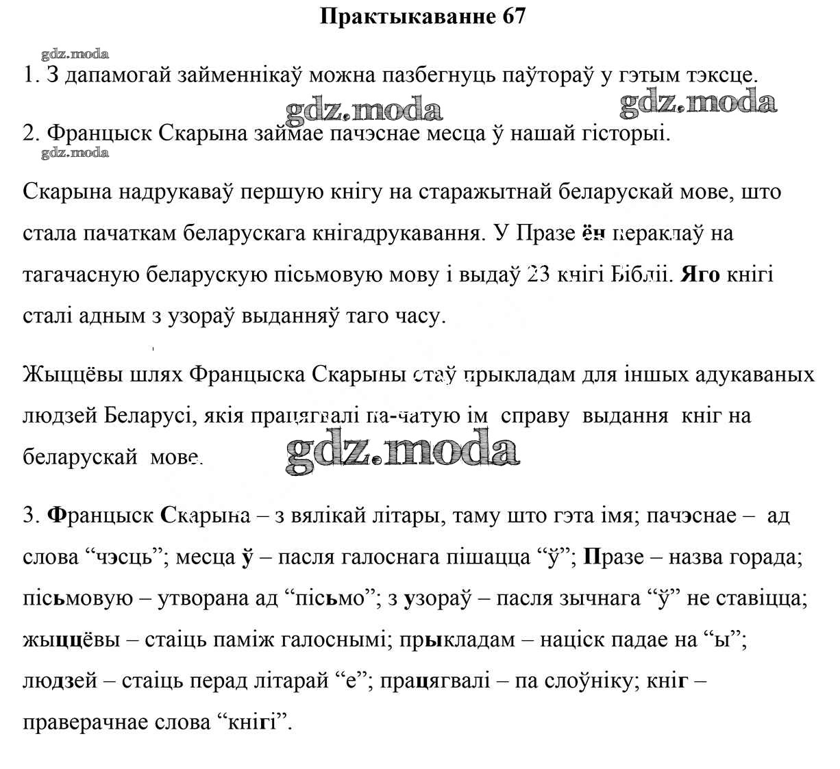 ГДЗ решение к заданию № 67 Белорусский язык 5 класс Валочка Г.М. Национальный институт образования 2019 Часть 1, Часть 2 ФГОС бесплатно на гдз.мода!