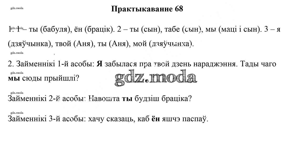 ГДЗ решение к заданию № 68 Белорусский язык 5 класс Валочка Г.М. Национальный институт образования 2019 Часть 1, Часть 2 ФГОС бесплатно на гдз.мода!