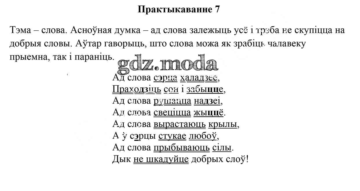 ГДЗ решение к заданию № 7 Белорусский язык 5 класс Валочка Г.М. Национальный институт образования 2019 Часть 1, Часть 2 ФГОС бесплатно на гдз.мода!