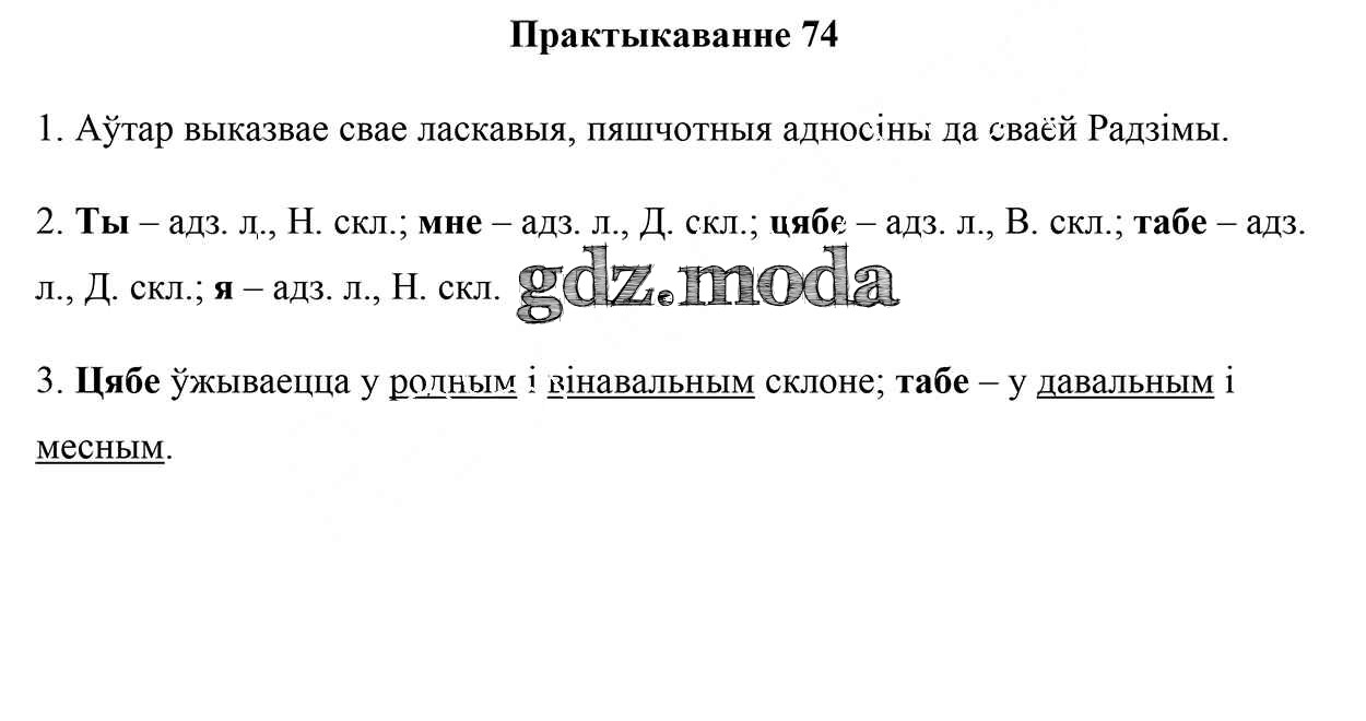 ГДЗ решение к заданию № 74 Белорусский язык 5 класс Валочка Г.М. Национальный институт образования 2019 Часть 1, Часть 2 ФГОС бесплатно на гдз.мода!