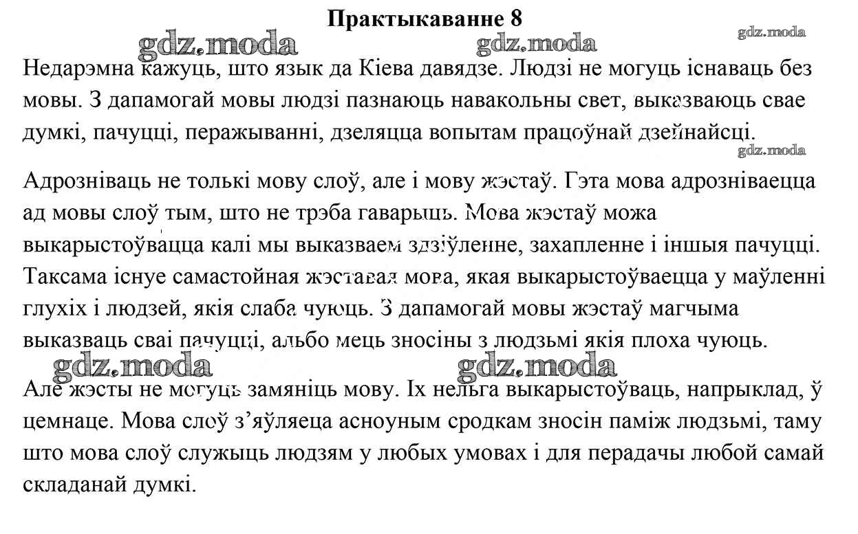 ГДЗ решение к заданию № 8 Белорусский язык 5 класс Валочка Г.М. Национальный институт образования 2019 Часть 1, Часть 2 ФГОС бесплатно на гдз.мода!
