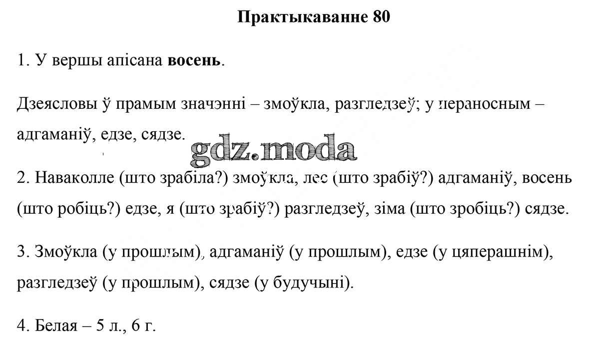 ГДЗ решение к заданию № 80 Белорусский язык 5 класс Валочка Г.М. Национальный институт образования 2019 Часть 1, Часть 2 ФГОС бесплатно на гдз.мода!