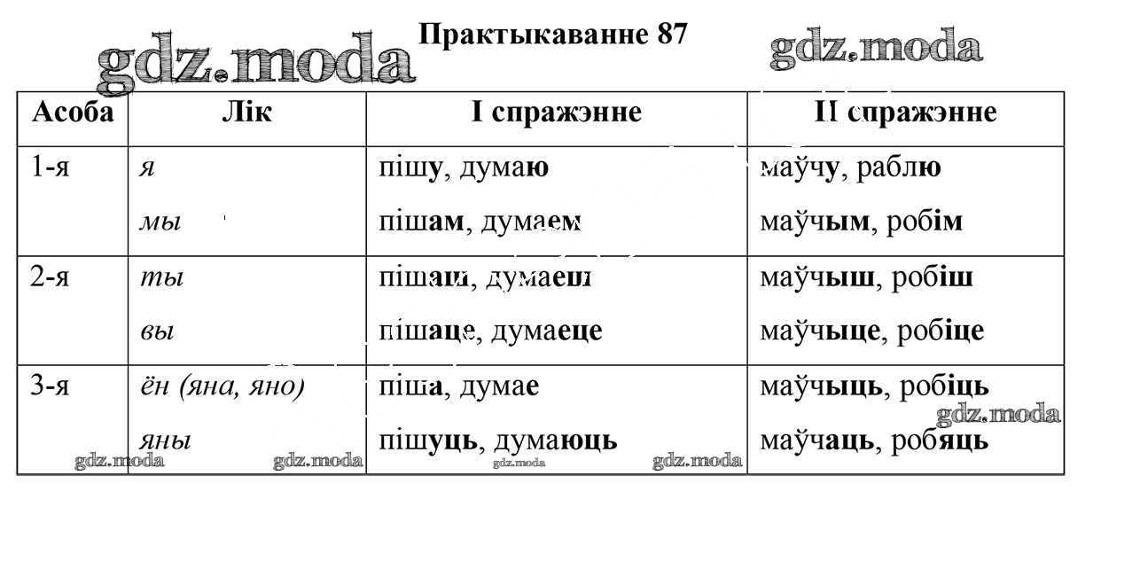 ГДЗ решение к заданию № 87 Белорусский язык 5 класс Валочка Г.М. Национальный институт образования 2019 Часть 1, Часть 2 ФГОС бесплатно на гдз.мода!