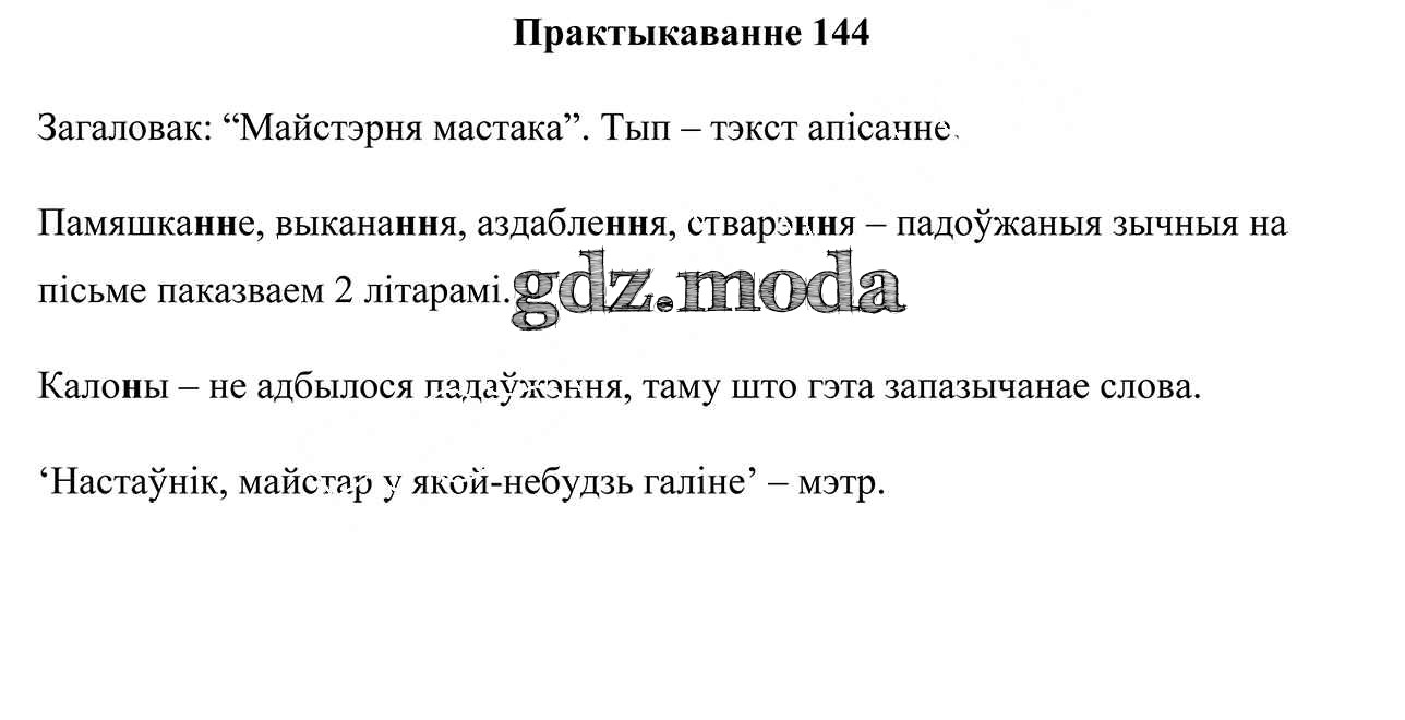 ГДЗ решение к заданию № 144 Белорусский язык 5 класс Валочка Г.М. Национальный институт образования 2019 Часть 1, Часть 2 ФГОС бесплатно на гдз.мода!
