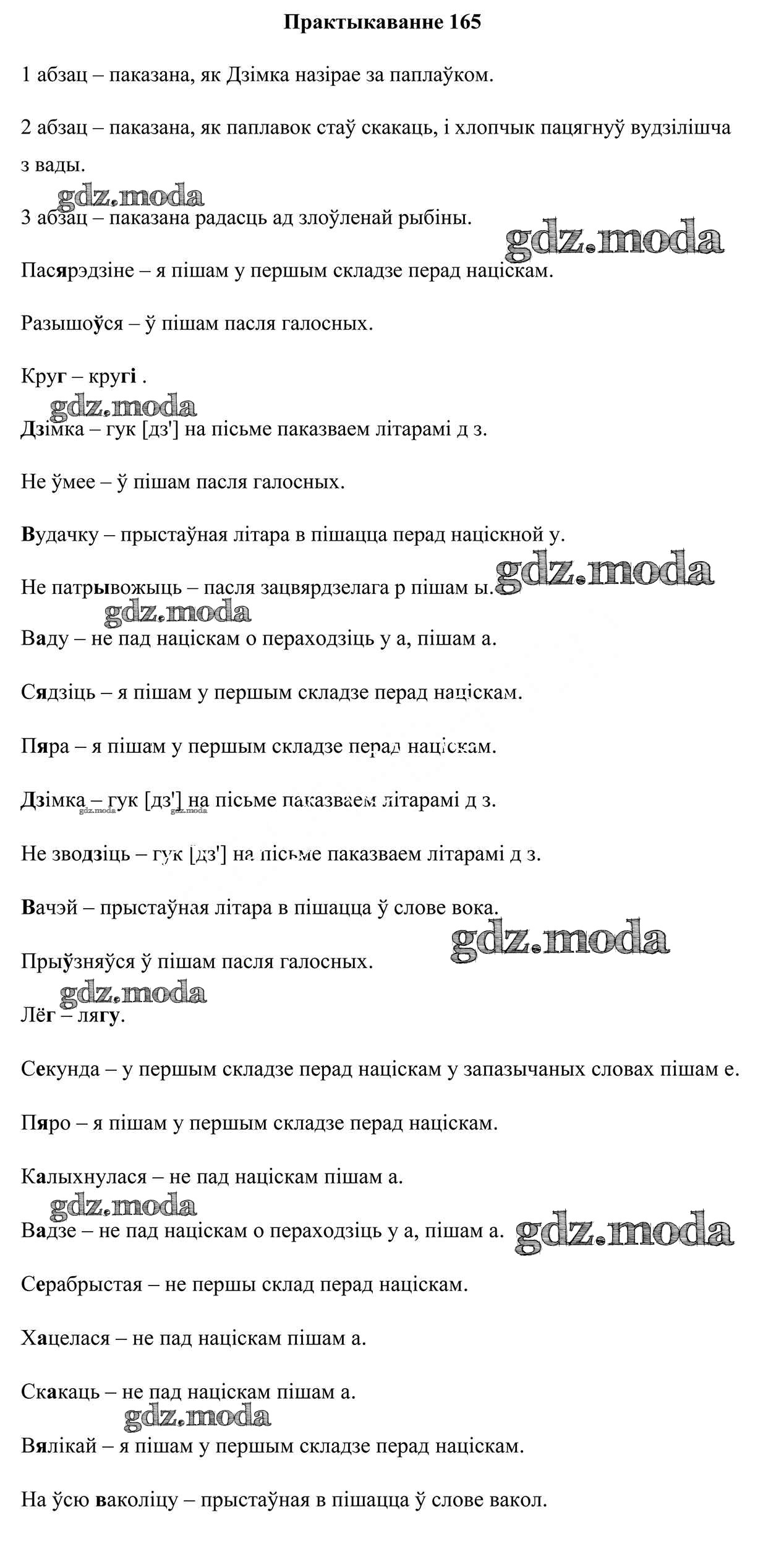 ГДЗ решение к заданию № 165 Белорусский язык 5 класс Валочка Г.М. Национальный институт образования 2019 Часть 1, Часть 2 ФГОС бесплатно на гдз.мода!