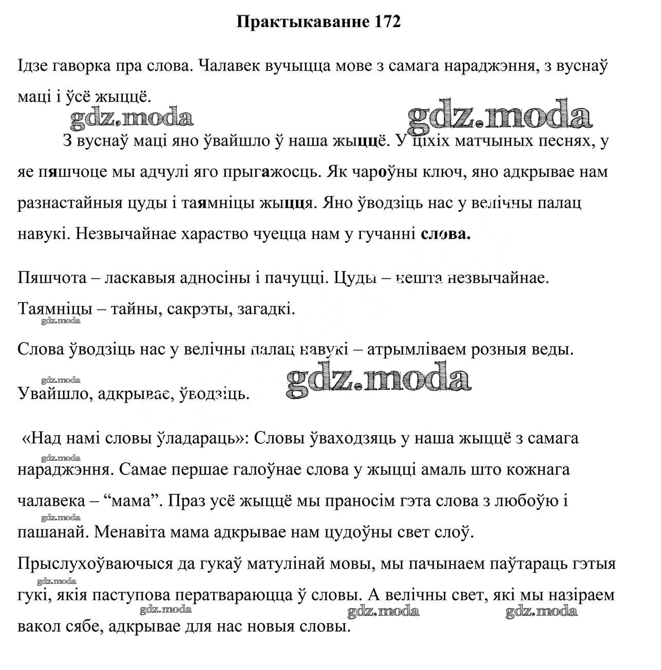 ГДЗ решение к заданию № 172 Белорусский язык 5 класс Валочка Г.М. Национальный институт образования 2019 Часть 1, Часть 2 ФГОС бесплатно на гдз.мода!