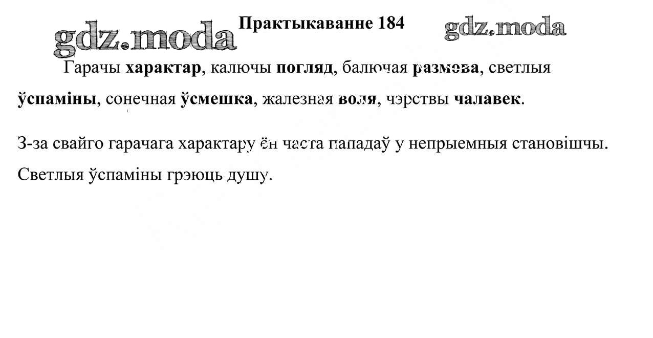 ГДЗ решение к заданию № 184 Белорусский язык 5 класс Валочка Г.М. Национальный институт образования 2019 Часть 1, Часть 2 ФГОС бесплатно на гдз.мода!