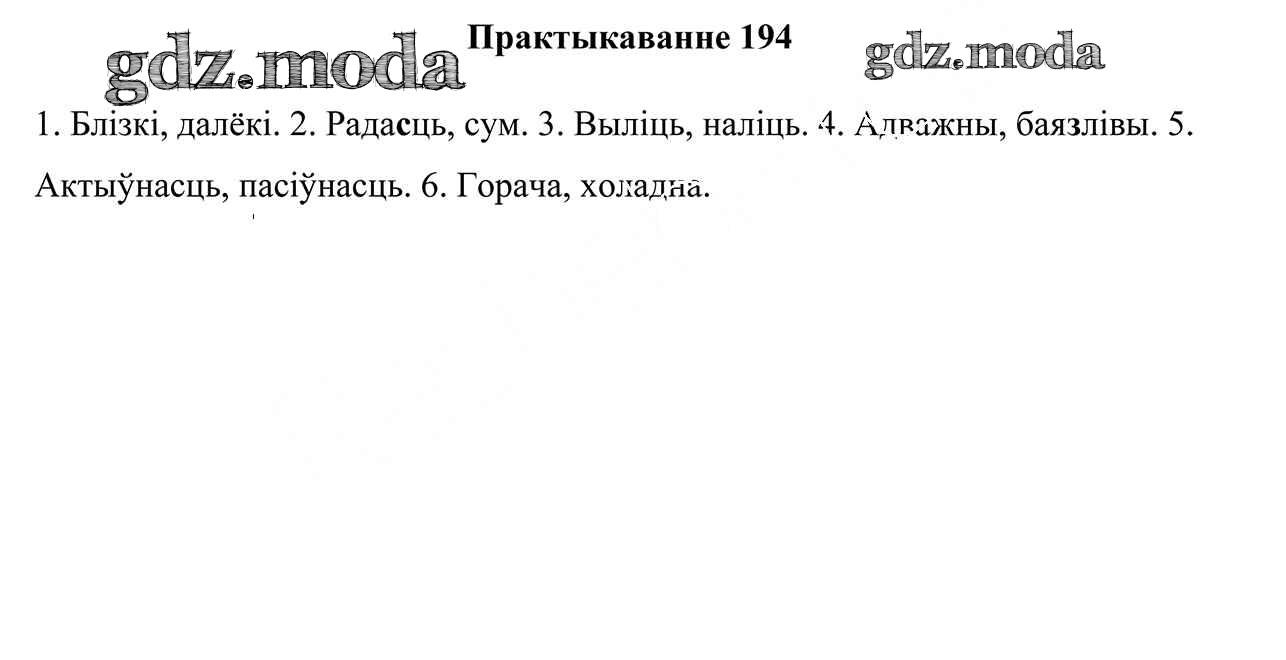 ГДЗ решение к заданию № 194 Белорусский язык 5 класс Валочка Г.М. Национальный институт образования 2019 Часть 1, Часть 2 ФГОС бесплатно на гдз.мода!
