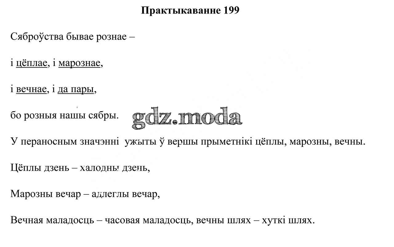 ГДЗ решение к заданию № 199 Белорусский язык 5 класс Валочка Г.М. Национальный институт образования 2019 Часть 1, Часть 2 ФГОС бесплатно на гдз.мода!