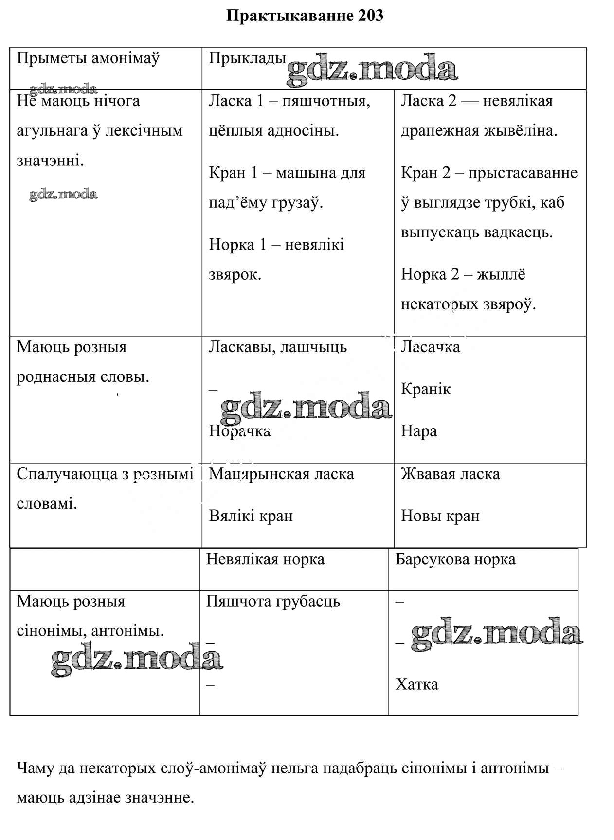 ГДЗ решение к заданию № 203 Белорусский язык 5 класс Валочка Г.М. Национальный институт образования 2019 Часть 1, Часть 2 ФГОС бесплатно на гдз.мода!