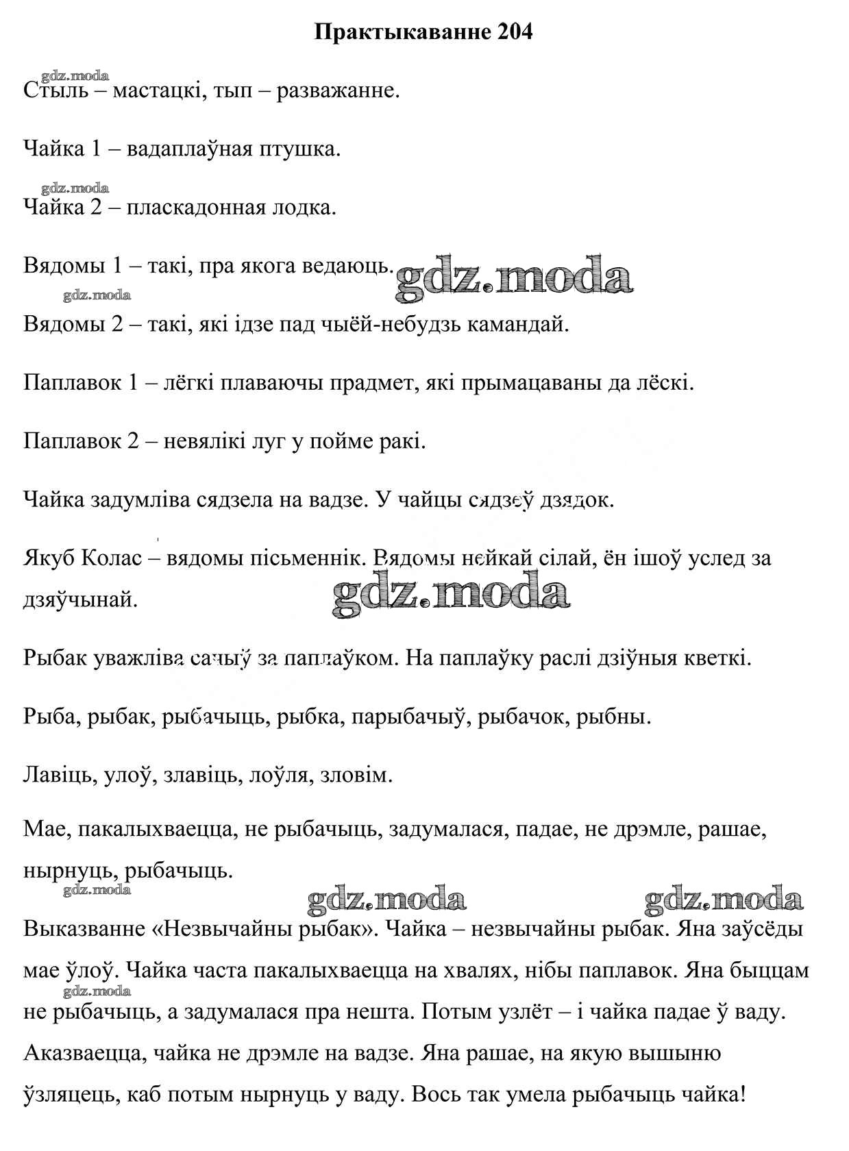ГДЗ решение к заданию № 204 Белорусский язык 5 класс Валочка Г.М. Национальный институт образования 2019 Часть 1, Часть 2 ФГОС бесплатно на гдз.мода!