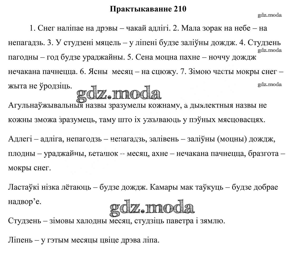 ГДЗ решение к заданию № 210 Белорусский язык 5 класс Валочка Г.М. Национальный институт образования 2019 Часть 1, Часть 2 ФГОС бесплатно на гдз.мода!