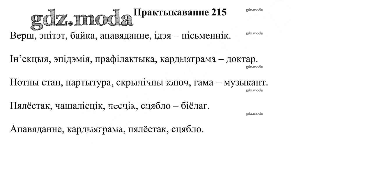 ГДЗ решение к заданию № 215 Белорусский язык 5 класс Валочка Г.М. Национальный институт образования 2019 Часть 1, Часть 2 ФГОС бесплатно на гдз.мода!