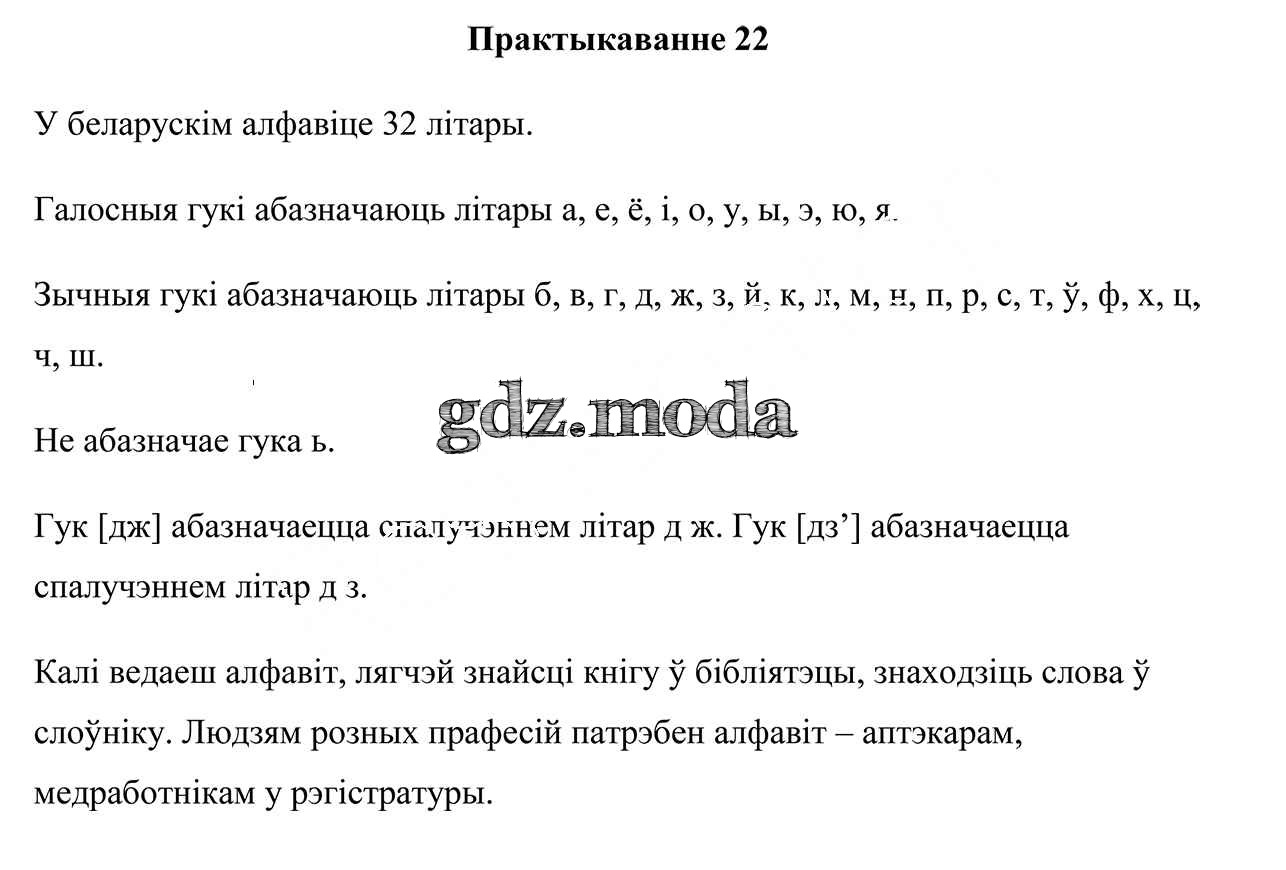 ГДЗ решение к заданию № 22 Белорусский язык 5 класс Валочка Г.М. Национальный институт образования 2019 Часть 1, Часть 2 ФГОС бесплатно на гдз.мода!