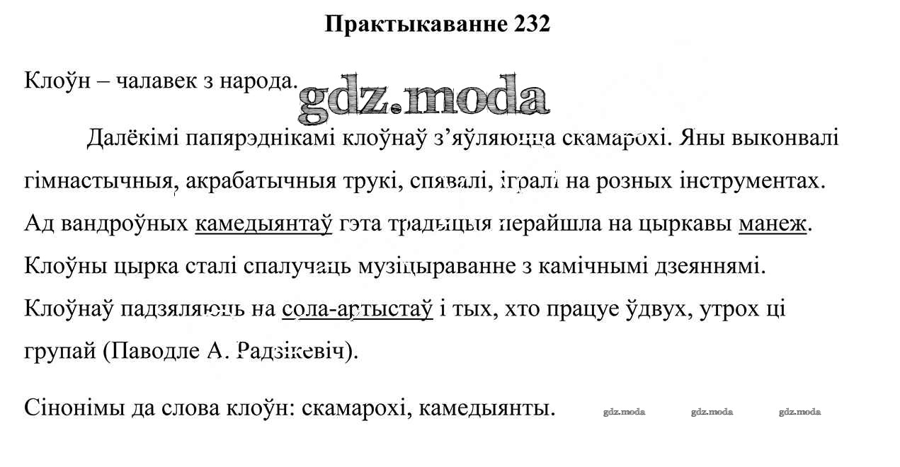 ГДЗ решение к заданию № 232 Белорусский язык 5 класс Валочка Г.М. Национальный институт образования 2019 Часть 1, Часть 2 ФГОС бесплатно на гдз.мода!