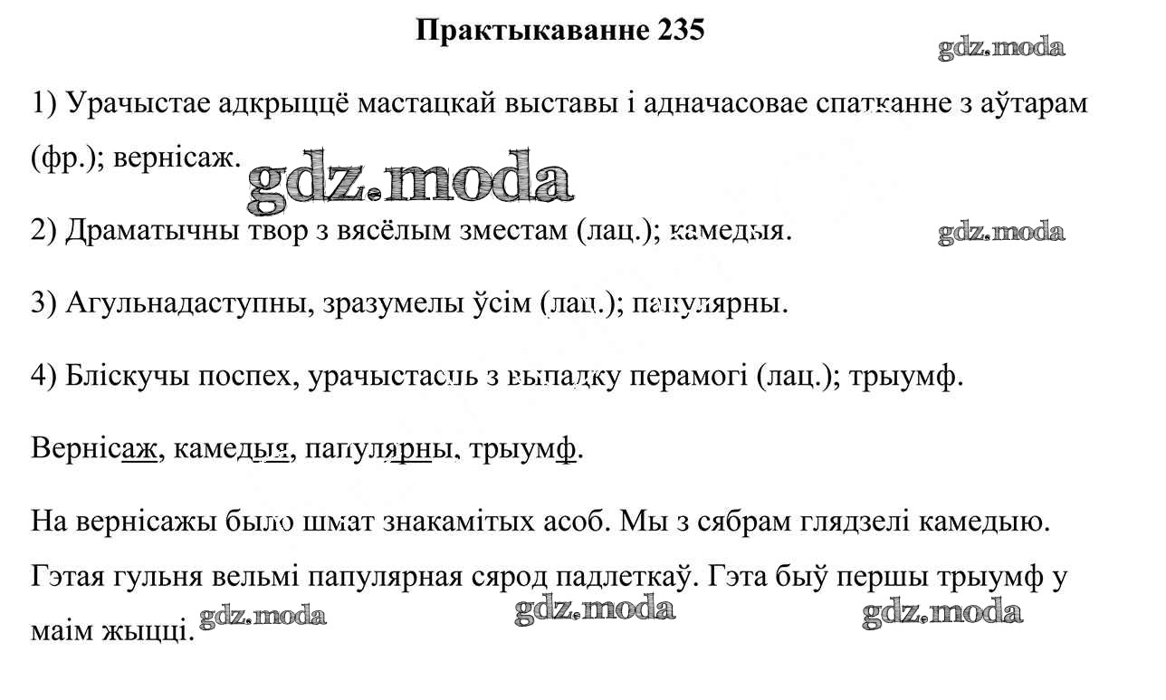 ГДЗ решение к заданию № 235 Белорусский язык 5 класс Валочка Г.М. Национальный институт образования 2019 Часть 1, Часть 2 ФГОС бесплатно на гдз.мода!