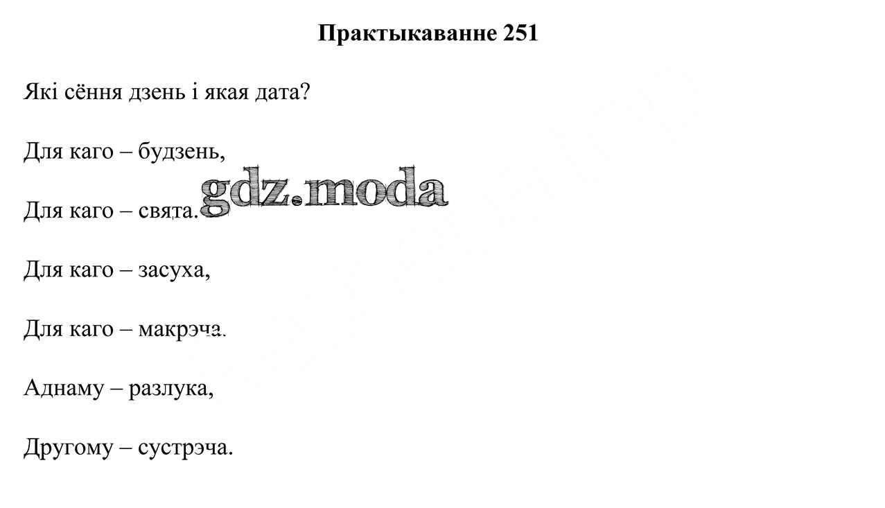 ГДЗ решение к заданию № 251 Белорусский язык 5 класс Валочка Г.М. Национальный институт образования 2019 Часть 1, Часть 2 ФГОС бесплатно на гдз.мода!