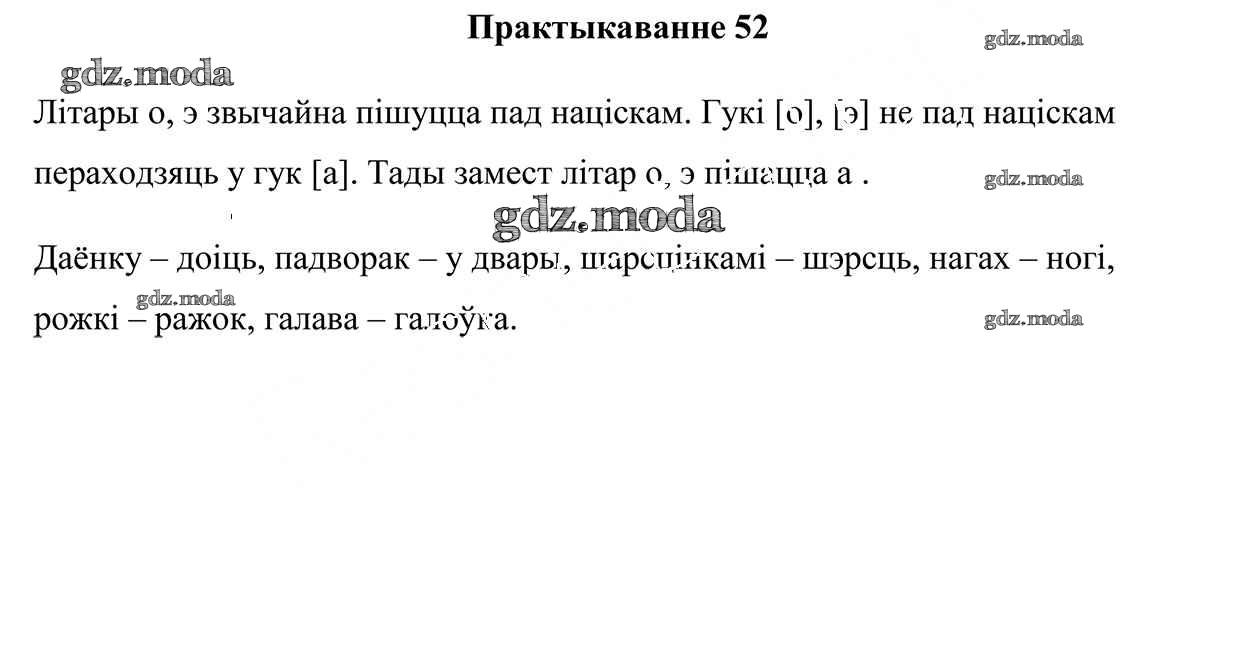 ГДЗ решение к заданию № 52 Белорусский язык 5 класс Валочка Г.М. Национальный институт образования 2019 Часть 1, Часть 2 ФГОС бесплатно на гдз.мода!