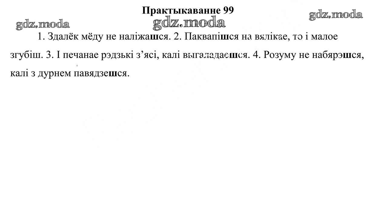 ГДЗ решение к заданию № 99 Белорусский язык 5 класс Валочка Г.М. Национальный институт образования 2019 Часть 1, Часть 2 ФГОС бесплатно на гдз.мода!