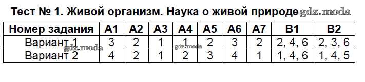 ГДЗ решение к заданию № Тест №1. Живой организм. Наука о живой природе Биология 5 класс Контрольно-измерительные материалы (КИМ) Богданов Н.А. ВАКО 2017 ФГОС бесплатно на гдз.мода!
