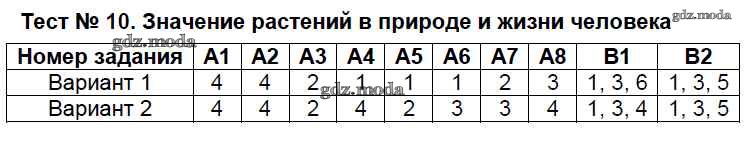 ГДЗ решение к заданию № Тест №10. Значение растений в природе и жизни человека Биология 5 класс Контрольно-измерительные материалы (КИМ) Богданов Н.А. ВАКО 2017 ФГОС бесплатно на гдз.мода!