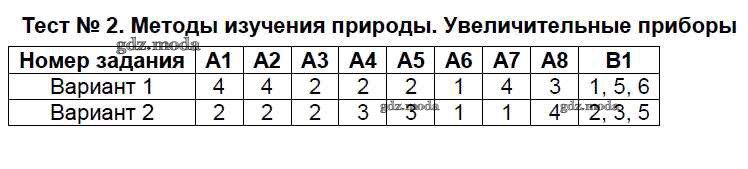 ОТВЕТ на задание № Тест №2. Методы изучения природы. Увеличительные приборы Контрольно-измерительные материалы (КИМ) по Биологии 5 класс Богданов